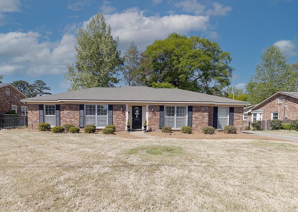Brick ranch well maintained updated 4 bedroom 2 bath in the heart of town, 2 car carport, fenced in yard, flat backyard. Two living areas with a formal living room, & den, formal dining room, updated kitchen, stainless appliances, granite countertops, breakfast bar, breakfast room, laundry room, hardwoods throughout, no carpet. big closets, hall bath has separate room with tub and toilet, beautifully landscaped yard, storage area off carport. Storage shed in backyard, Master suite has en suite bathroom and 2 closets. SO close to everything in town, shopping, dining and schools.