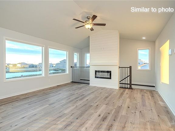 Introducing the NEW Quincy Ranch Plan built by Greenland Homes! This beautifully designed home features three bedrooms and two bathrooms. The open-concept living room boasts a stunning full-stone fireplace, creating a cozy yet sophisticated centerpiece for the space.
