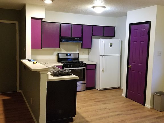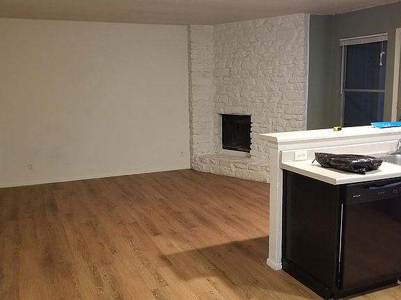 Down Stairs Unit in the trees, Two Bedrooms, One Bath, Garden Window, Stone Fireplace, Kitchen cabinets are natural wood finished not painted, Washer & Dryer hook-ups inside unit, Gas Heat & Cooking, Private Deck/Patio, New paint, Individual Storage Unit, Short Walk to HEB, Bus Stop, Shopping. Large space for the price. Call for details and to set up a showing. Tenant pays for all utilities. Pet deposit required.