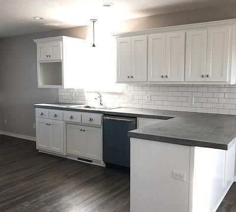 Beautiful new construction built by Kyle Garvin Construction with unique finishes! Split floor plan, 3 bedrooms, 2 bathrooms, custom white cabinets,subway tile backsplash, concrete counter tops, cedar posts and shutters out front, granite bathrooms,separate utility room, garage and much more! Trendiest home on the block, take your buyers today!