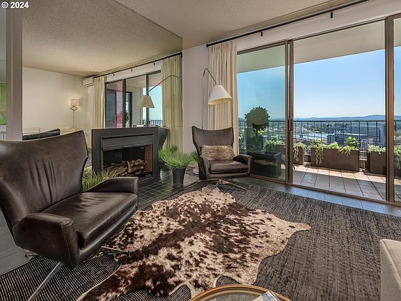 This 3 bedroom 2 bath condo is on the 17th floor of Madison Tower. Gorgeous panoramic views of Mt. Hood, the Willamette River, and the South Waterfront. Huge living room with electric fireplace opens to large east-facing view balcony. Cook in your large remodeled eat-in kitchen. Primary suite with balcony, walk-in closet, and bathroom ensuite. Two additional bedrooms and a second bath. Laundry room in the unit. Deeded, secure, parking space and a large storage unit. Unparalleled HOA amenities which include the updated Sivers center with a new saltwater indoor pool and jacuzzi, beautiful new locker rooms, and updated community room. Other amenities include an outdoor pool, 2 community rooms with/ kitchens leading to patios and pools great for entertaining, weight & workout rooms, and 3 saunas. Lovely grounds and a community park. 53 guest parking spaces, unheard of downtown. 24 hour concierge. On Max line and bus line. Streetcar one block north. Very large storage B2 #7 1743 Close to OHSU, Portland State, Walk the Halprin Park Sequence to the Downtown Cultural Center or RiverPlace Esplanade shops and restaurants. The American Plaza offers Book Clubs, Exercise Classes, Discussion Groups, Indoor/Outdoor Pools, Concierge, and more. The condo complex is Pet-friendly and has no rental cap.