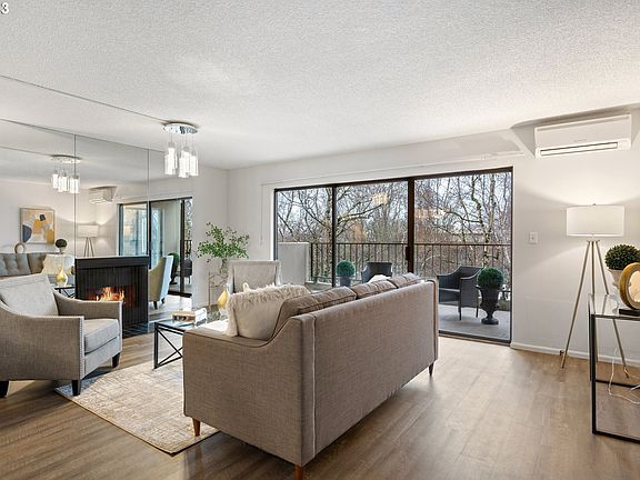 Updated condo open & great room floor plan. Living room with cozy gas fireplace opens to large covered deck overlooking trees & urban wildlife. Primary bedroom suite opens to tranquil deck. All appliances new! New luxury vinyl throughout. Den can easily be converted to second bedroom. Seriously can't beat the price per Sq. Foot downtown. No rental cap and pet friendly. Condo amenities include indoor & outdoor pools, workout rooms, 53 guest parking spaces. Super close to Portland State and OHSU.