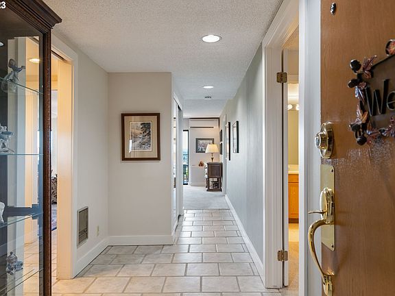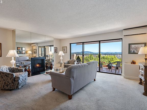 Open and light condo with beautiful views of Mt. Hood and South Waterfront. Great room concept with cozy gas fireplace and slider that opens to huge covered view balcony. Both bedrooms have their own private bath. Primary bedroom opens through slider to view deck. Kitchen with eating bar and tile floors opens to dining and living room. Laundry room in the unit. Unit comes with secured deeded parking space and large storage unit. This community has unparalleled amenities not seen anywhere else downtown. There is a separate community building called the Sivers Center that includes an indoor pool with Jacuzzi. Men and women's locker rooms, sauna, work out room, meeting room, huge community room with kitchen that opens to outdoor patio. There is an outdoor pool in the Lincoln tower, another community room with kitchen that opens to a patio. Second work out and weight room with men and women's locker rooms with saunas. On sight property management, concierge, security guard, 53 guest parking spaces, unheard of downtown. On Max line, bus line and street car one block away. Stroll the Halprin Park Sequence to the Keller Auditorium and downtown Cultural district or restaurants along the RiverPlace Esplanade. No rental cap and pet friendly. close to Portland state and OHSU.