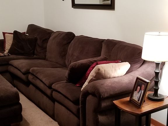 Our home is a 1 story ranch, very cozy. There is a stairway to a full attic for storage. There is a living room, dining room, full kitchen, 2 bedrooms with a large bathroom between the bedrooms. There is a computer/playroom that has a doorway into a mother-in-law apartment. the downstairs has a shower/sink/toilet. also a place for washer and dryer and has a double wash tub. there are also clothes lines in the wash area. the rest of the basement has a full kitchen with a den like area and more storage There is also a two car detached garage and a large back yard.
