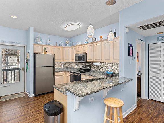 Back on the market at no fault to the seller. Don't miss your chance to own this beautifully updated and well maintained 2 bed, 2 bath condo, located just minutes from the beach. This home is ready for the beach and easy maintenance with vinyl plank flooring throughout the main living areas and bedrooms, granite countertops, updated fixtures, brand new backsplash installed and more. Enjoy looking over the pool from your screened in balcony (12’11x7’8) or take advantage that this community is right off of 17 so you can be at the beach, shopping, entertainment or visit tons of eateries in minutes. This home is beautiful and the location is unmatched. Sweetwater is desirable not only for its location but also for a relatively low hoa that includes pool access, cable and more. Schedule a showing today to see this home for yourself.