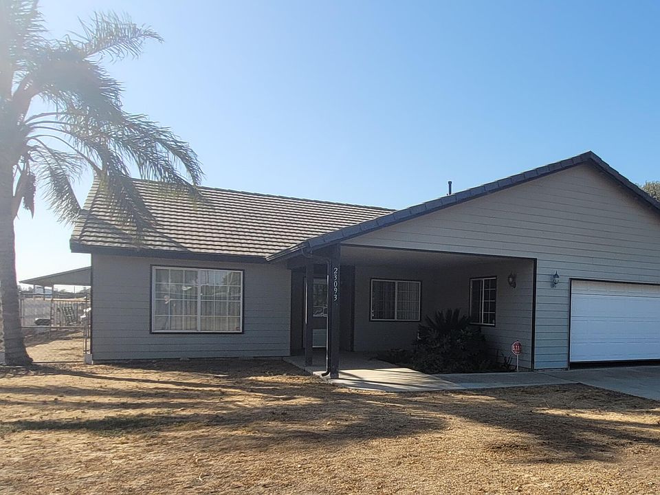 Great west side location on the outskirts of Porterville with home, pool, shop, barn on 1.05 acre lot. This home is 1665 square ft, 3 bedroom, 1 3/4 bath,, as you walk out the sliders from the dining room to a covered patio and fenced in ground pool. Past the pool is the shop with a room that would be perfect for an office or pool room. There is half bathroom in the shop. This property is set up for horses.. Beautiful views! Call Today!.