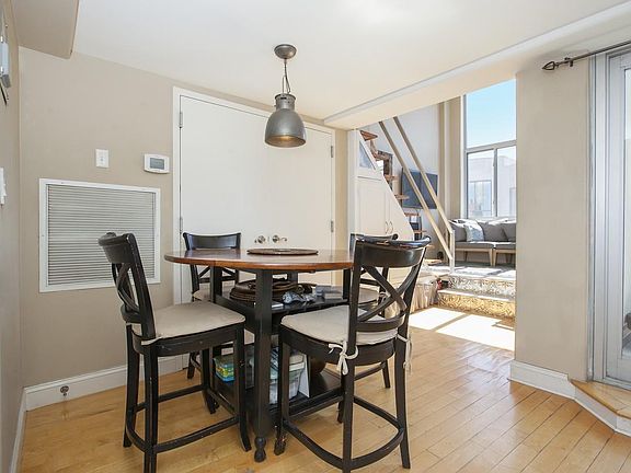 A stunning triplex in the sky, unit 4A is a truly one-of-a-kind space. As soon as you enter, youll be blown away by double-height ceilings and a stunning glass wall that opens onto one of the apartments two private terraces. The spacious first floor easily accommodates a large group, with a comfortable living and dining area. On this floor youll also find a full bathroom, large kitchen and washer/dryer. Off the living room, take the stairs up to an enclosed mezzanine, which is currently being used as a bedroom. This floor also features a second full bathroom and lots of additional closet space. Continuing up to the third floor, youll find a second sleeping area thats perfect for guests, as well as the apartments second terrace that has amazing open views. To top it off this unit also features central A/C and heat and a shared basement space for storage. Located at 231 16th Street on a picturesque Park Slope block, this apartment is just steps away from trendy Fifth Avenue shops and restaurants, two short blocks from the subway, and a quick walk to Prospect Park.The building is also pet friendly. With one of the lowest carrying costs in Brooklyn, common charges at $268 per month and a 421A tax abatement in place until June 30th 2033, unit 4A is a must-see. -Please note per the offering plan this is legally considered a loft/studio.