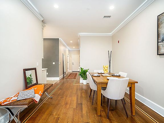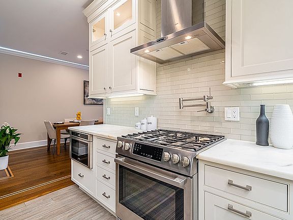 Welcome to The Gannon, a newer construction concrete and steel building tucked away on a beautiful tree-lined street in the heart of historic Downtown JC. This 1100 sqft, corner 2BR 2BA boasts 9'10" high ceilings, 7' tall solid doors and quarter sawn wide red oak plank flooring with maple & walnut inlay throughout. The gourmet chef's kitchen comes completed with premier built-in Bosch appliances and a vented hood over the self-cleaning & convection gas oven. Solid maple Decora cabinets with inset doors & soft close drawers line the kitchen and are complimented by a large accent chalkboard wall. The countertops are exclusive Italian Gold Calacatta marble, honed and sealed. Relax in the luxurious master ensuite with Kohler 10" rain showers and body jets. The unit is prewired for entertainment and smart home technology. Central HVAC, full size washer/gas dryer and back up generator. Enjoy the shared backyard and rooftop deck, complete with bathrooms and an outdoor kitchen. Building has double secured (key fob) entrance and smart package delivery room. Located just 2 blocks from the Grove St PATH and Newark Ave, with local shops & restaurants right on your corner. Low HOA $430, taxes $10,856.