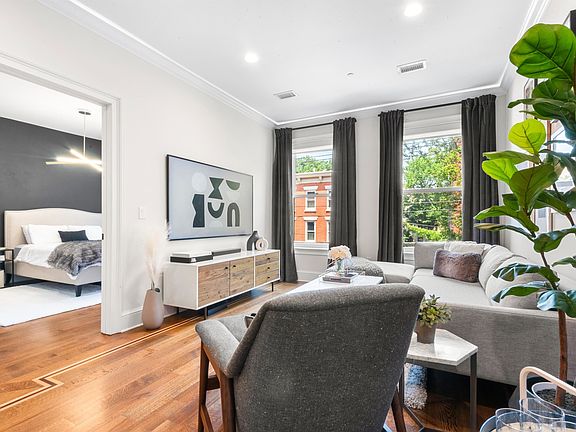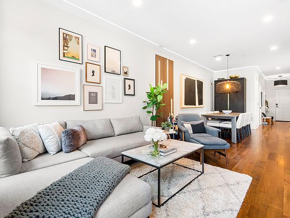 Located in the heart of downtown Jersey City, The Gannon is an elevator condo building completed in 2016. This concrete & steel building is centrally located to the various restaurants, cafes, and shops in the immediate vicinity and less than 3 blocks from the Grove St. PATH station. The 1,139 sq ft, 2 bedroom/2 bathroom sophisticated condo offers numerous high end features. The chef's kitchen is outfitted with Italian Calacutta marble countertops, Bosch appliances – new dishwasher, vented hood, pot filler, and an abundance of cabinets extending to the ceiling. The elegant primary suite has a custom-designed and built California walk-in closet and an expansive bay window which bringing in plenty of natural light. A spa-like experience is created in the primary suite marble bathroom with Kohler rain shower & body sprays, The 2nd bedroom is also outfitted with a custom designed California closet. Notable features consist of 5” oak wide plank edge grain flooring, central AC, solid wood doors, 9’10” ceilings, and custom window treatments. Full size Bosch washer/dryer and tankless water heater for added convenience. Recessed lighting throughout the entire residence and LED perimeter mood lighting in the living/dining area creates intimacy. The common areas include a resident's courtyard with a manicured lawn on the 1st floor and expansive common rooftop with a kitchenette, bbq grills, patio furniture, and city views. Bike storage is available in the building garage. Secure package room and key FOB entry in lobby. Offsite parking is available nearby for a fee. Property video available.: https://youtu.be/XBUubAg28Qo