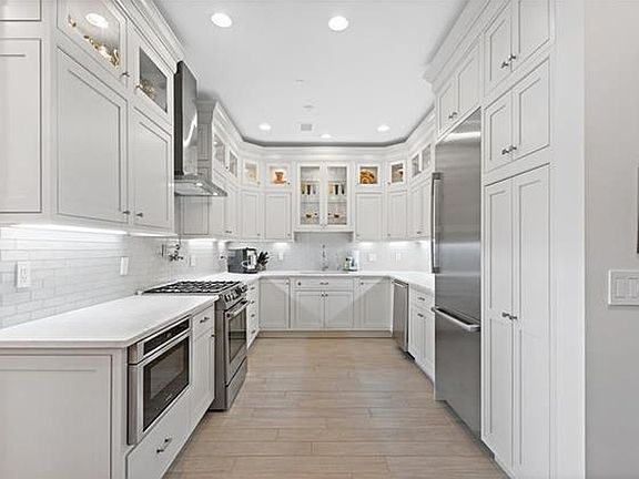 Welcome to 'The Gannon', a premier downtown Jersey City steel & concrete building located just steps from the Grove Street Path. Upon walking in to this home you will immediately take notice of the gleaming Red Oak wide plank with maple and walnut inlay flooring throughout, and the thoughtful details of under lighting surrounding the high ceilings. This beautiful 2BR/2BA homes highlights a breathtaking gourmet chef's kitchen outfitted with Italian Calacatta Marble, Bosch appliances, and gorgeous white cabinetry. The oversize master bedroom with twin vanity en-suite and large custom walk-in closet gives you the space and finishes you should expect from this high-scale boutique building. Both bathrooms have tankless TOTO Neorest toilets. Additional features include smart home technology - all lighting controlled by Lutron iOS/Android App, all closets with custom built-ins, in-unit washer/dryer, central A/C, and one deeded covered garage parking space to top it off. Common amenities include an elevator, bicycle storage, backup generator, landscaped resident's courtyard and an amazing rooftop deck with a large outdoor kitchen! Amazing location for commuters, close to restaurants, shopping, and near Van Vorst and Hamilton parks. Be apart of one of the best places to live in Jersey City!