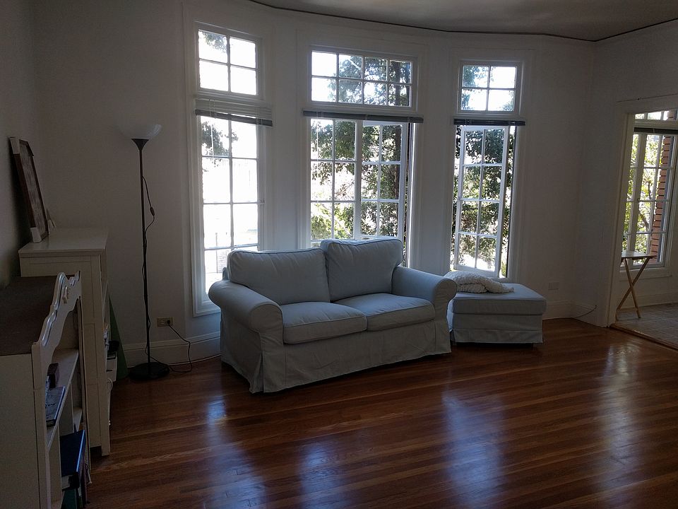 Light-filled 1 Bedroom unit on first floor has some old flare, high vaulted ceilings, hardwood floors throughout. Linoleum in kitchen, tile in bathroom also toilet, tub and sink, Electric wall heaters in living room and bedroom. On-site laundry room in basement. Close to BART, Wholefoods and Lake Merritt. Huge amounts of closet space. Owner pays water, garbage and gas. Unfurnished. Unit ready for occupancy. One (1) year lease. Deposit $2420. Cat(s) with additional $200 deposit. Street parking. Off-street parking $75 per month when available. Owner looking for good credit rating and History. Verifiable income at least 1.5 to 2 times the rent bring current valid ID. state, proof of employment is appreciated, $25 single applicant $35 couple.