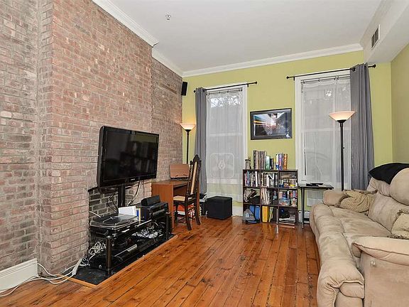 1 bedroom condo for sale on a quiet, tree-lined street in the heart of downtown. Fantastic Location! Close to Grove Street PATH, & restaurants, coffee shops, parks & nightlife that make Jersey City a great place to live. Features include exposed brick walls, decorative fireplaces, original pine hardwood floors, high ceilings w/ crown moldings, &a fully modern kitchen, bathroom, and central air. Functional layout w/large living room at the front of the apartment & a large master bedroom at the rear of the apartment with bright, Southern exposure. Both feature exposed brick walls with decorative fireplaces. LR is open to the kitchen that features wood cabinets, breakfast bar seating, granite countertops, & stainless steel appliances. The bathroom is large in scale & beautifully appointed with subway tile and a granite-topped vanity. Storage includes 2 closets in the BR, a coat closet, & private storage room in the basement. Common features also include laundry in the basement, & a common yard - perfect to bar-b-que! This is a pet friendly, fully renovated historic building.