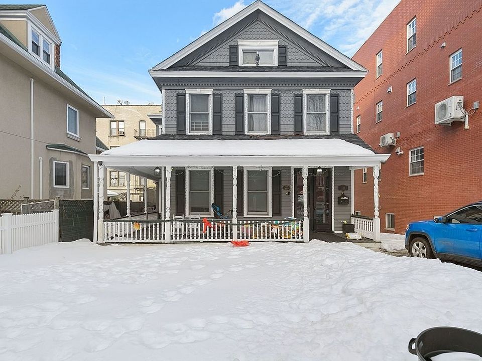 Welcome to an absolutely stunning historical victorian home sitting on a rare, extra large 45 x 100 property. This renovated home has retained its original details and charm from when the house was built in 1870. The extra large lot has a long and wide PRIVATE DRIVEWAY with a two car garage. Relax and unwind on your wrap around front porch. There is a spacious front yard with a pool and a deck in the rear yard. This south facing home boasts an abundance of natural sunlight seeping throughout. This move in ready home features brand new hardwood floors throughout and a bathroom on the first floor. There is a renovated granite eat in kitchen. This outstanding home features the original wood burning fireplace. Newly installed HVAC ductless split A/C and heating units. Upstairs boasts four bedrooms and a full bath. There is a finished walk up attic which is used as storage space. The finished basement has a tiled floor and a bath. The convenient location is just steps from the stores, restaurants, transportation and everything Bay Ridge has to offer. This is that special home you have been waiting for, look no further, this is it.