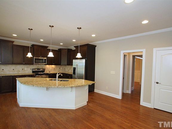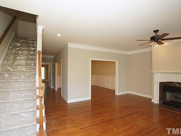 One of the best CUSTOM Townhomes in Madison Place w/upgrades Galore! 4 BDRM, 3.5 baths. Maintenance free lifestyle w/amenities at Carpenter Village. Finished Basement has Guest Bdrm w/full bath & Rec Rm. High end kitchen w/granite island, cozy breakfast lounging area, Tiled porch overlook wooded buffer & green-space. NEW CARPET & PAINT. 2-car garage backs to total Privacy. Enjoy walking around the lake, walking trails, pool, Tennis. Close to RTP,Airport, Shopping, restaurants, library, & great schools.