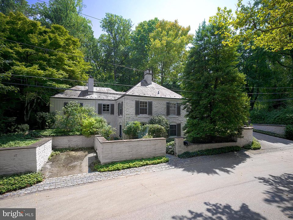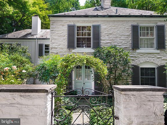Welcome to this charming residence on Avon Road in Haverford, originally the gatehouse to the grand "Avonwood" estate. This historic property retains original entrance pillars and stone walls and is set amidst beautiful, serene surroundings on a quiet road with little through traffic. The painted stone home features a slate roof, flagstone walkways, and Belgian block details. Enter through the lattice arch and follow a trellis-covered flagstone walkway along a peaceful courtyard to the main entrance. The foyer, which boasts terra-cotta tiled flooring, offers a warm welcome and includes a staircase leading to the lower level. The bright, spacious living room has large windows with two exposures plus two sets of French doors that open to the courtyard. It also includes built-in display cabinetry, a large wood-burning fireplace, and captivating views of the grounds. An elegant dining room is accessible through two sets of tall doors from the living room and a swinging door from the kitchen. This large room features moldings, hardwood flooring, and built-in lighted display and storage cabinetry. The walls were hand-painted by PAFA artist Iwan Nazarewicz. Windows on two sides, including a wall of sliding glass doors, open to the rear flagstone terrace. A nearby den, with its cozy gas log fireplace, built-in bookcase and moldings, connects to both the living room and eat-in kitchen, and makes an ideal retreat for reading and relaxation. The kitchen, blending functionality with charm, features a cushioned window seat for casual dining, tall wood cabinetry, a triple stainless sink, bar sink, and appliances including a KitchenAid 4-burner gas cooktop with grill and double wall ovens. The primary bedroom, located on the first floor, has exquisite Zuber wallpaper and a hidden king-sized Murphy bed behind wall panels. French doors open to the courtyard and bring in natural light. The primary bath includes a vanity with double sinks and a shower with multiple side sprays. An adjacent small bedroom, which can also be used as a dressing room, has windows on two sides and three closets. A nearby powder room adds convenience and style. The lower level is daylit with walk-out access to the front walled garden’s roses and camellias. There is a bedroom suite with windows on two sides, a closet, and a full bathroom with a tub/shower, which is perfect for guests or as a separate living space. This level also includes a sitting room, a large storage closet, and a room that could serve as another bedroom or fitness area. It has bookcases and double doors to the front garden. A small utility/office area ends at a laundry room. The expansive rear grounds include a large flagstone terrace with stone knee walls, an ivy-covered wall, multiple flower gardens, and a wide stone staircase ascending to a meadow. From there a path leads through the woods to a back gate on Avonwood Road. A separate structure, inspired by the architecture of European orangeries, houses a stunning 50-foot indoor lap pool with a glass roof. Mature trees provide privacy, while a detached two-car garage has convenient French doors opening toward the home and courtyard. This property combines historic charm and modern expansions, set in a peaceful, private woodland. The fully fenced grounds include multiple gardens and sitting areas. The flexible floor plan of the home adapts to many lifestyles. This historic oasis on the Main Line is a private sanctuary for luxurious living, all within convenient walking distance to the Haverford and Bryn Mawr train stations.