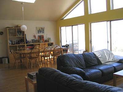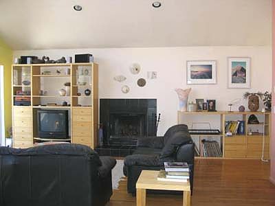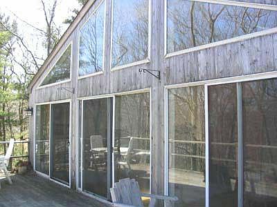 Two-story contemporary on Big Fresh Pond features a living room with fireplace, dining area, kitchen, three bedrooms, two baths and a powder room. Central air-conditioning, cable television, wrap-around deck and a heated swimming pool.