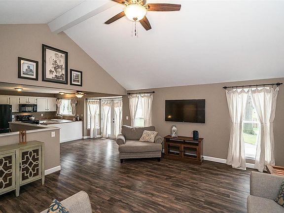 Great Room Ranch features open floor plan - vaulted ceiling - neutral decor - updated baths - updated lighting, hardware, ceiling fans, and flooring. Fence yard with mature trees, raised garden bed, freshly planted landscaping beds, newer patio and fresh sod in backyard.