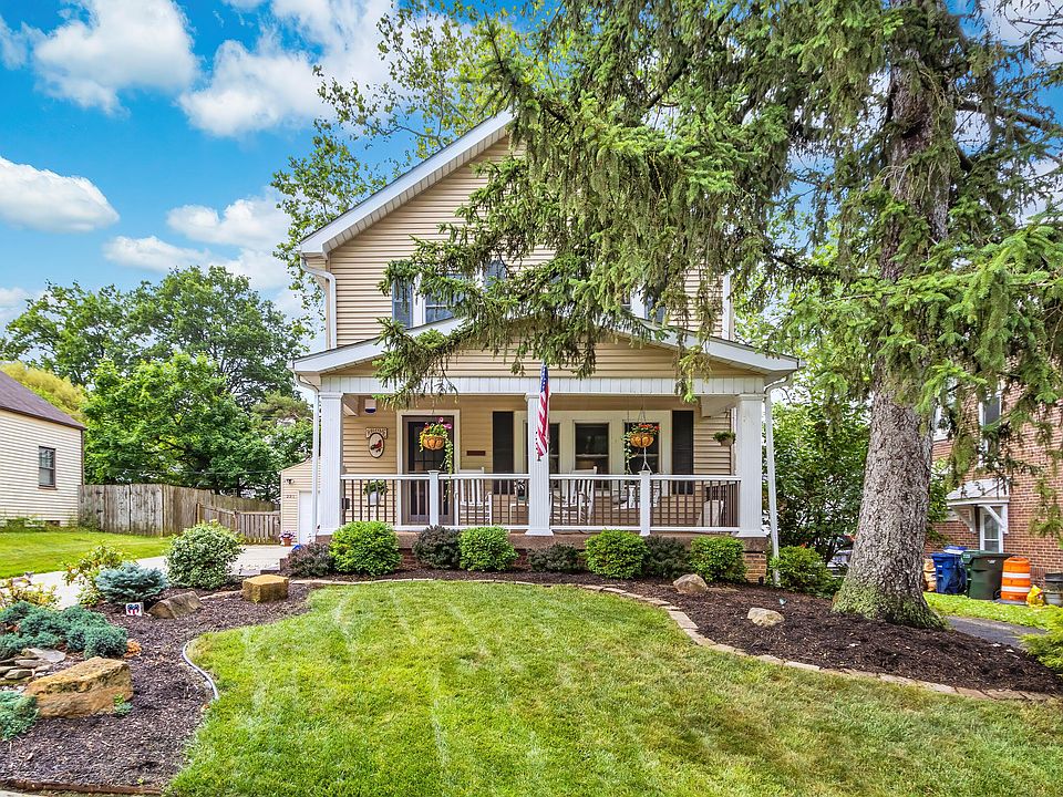 Clintonville's finest! UPDATES, QUALITY & LOCATION...it's ALL here! WELCOMING covered front porch entry w/nature stone flooring & ample outdoor entertainment space. Sun filled interior Living RM. featuring newly installed hardwood floors, loads of windows & original tiled fireplace. UNIQUE, open concept Dining, Den, 1st floor laundry & half bath combination on main level. UPDATED chef's Kitchen showcasing crisp white 42'' cabinetry, SS appliances, granite counters & tile backsplash. MASSIVE, Owner's bedroom w/BONUS walk-in closet & dual access to 2nd floor UPDATED full bath. Professionally waterproofed, unfinished basement w/opportunity to finish. AMAZING, outdoor back deck surrounded by lush, private landscape & grass area w/fully fenced lot & access to 2+ car, detached garage & MORE!