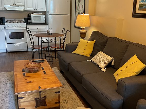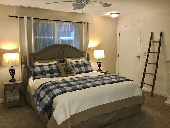 5 star Airbnb for rent. One year lease $2500/mo. (Will consider July thru October rental) Fully furnished garden apartment....includes 55" tv, linens, cookware, utensils. Central air conditioning. Electric fireplace in the large bedroom with king bed. Washer and dryer in unit and 3 closets. Just bring your clothes and move right in. ALL UTILITIES INCLUDED (including cable tv). AVAILABLE IMMEDIATELY. Beautiful neighborhood 5 minutes from downtown and 10 minutes to the mountain. Private entry with private deck and bbq grill. Bicycles with helmets provided. Covered parking. Snow removal included. You must have an all wheel drive vehicle, or 4 wheel drive in the winter to make it up the driveway unless you want to use cables. Available to view most any time. Must have good references. Please fill out a Zillow application if you are seriously interested. The apartment is for 2 maximum. The price is non negotiable at this time. No cats, maybe a small dog with extra deposit and cleaning fee. Owner pays all utilities including cable tv.