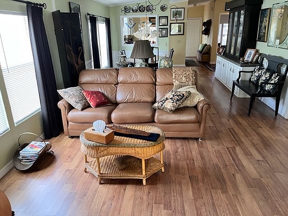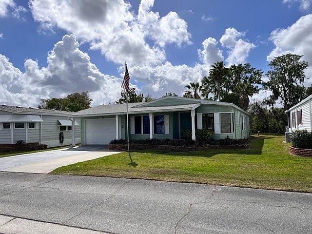 You'll love this CRAFTSMAN'S style home! Yes, over 1,500 square feet of comfortable living space for your enjoyment. You can be a full-time retiree or just a snowbird visiting paradise this is your home. This home features two bedrooms, two baths and offers an efficient kitchen with an eating area and a convenient pass-thru to the formal dining room. The living room dining room and bedrooms feature laminate flooring. As you walk thru the living room you enter the spacious sunroom that is complete with ceramic tile flooring and nine large windows that open the room to the outdoors. Here you are refreshed from the sunlight and vision of the plush greenway. There is a lanai off to the side of the house for your outside entertainment and enjoyment along with an extended patio. There is a water filtration system included. The roof was replaced in 2018 and the air conditioner and water heater were replaced in 2018. The house exterior was painted in 2019. The plumbing and water pipes underneath the house have been completely upgraded as well as the air handling system. There is an oversized one and one half car garage offering additional substantial storage space. Hurry, come see this beauty! You'll be glad you did. The monthly lot rent is $828.12/month and includes lawn care, 200 cable channels, 2 HD boxes, and High-Speed Internet! The Gardens community is pet friendly. All listing information is deemed reliable but not guaranteed and should be independently verified through personal inspection by appropriate professionals. Integrity Mobile Home Sales cannot guarantee or warrant the accuracy of this information, measurements, or condition of any property. Lot rent is subject to change.