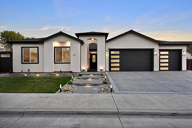 Welcome to 231 Bundeson Dr, located in the picturesque city of Hollister. This stunning property boasts a brand-new 4-bedroom, 2.5-bathroom main house with a 2-car garage and an attached Accessory Dwelling Unit (ADU). Main Residence - 2160 SF, ADU - 634 SF exterior stucco finished acrylic in Golden Sandstone, Lago waterproof flooring in the living room, kitchen, and hallway. Blanco Shaker cabinets have soft-close hinges, composite granite countertops, and a glossy mosaic glass backsplash. Ceiling fans in the living room and kitchen, skylights for natural illumination. The master bath features a Double sink vanity, composite granite countertops, and luxurious ceramic tile flooring. The ADU features one bedroom, one bathroom, a living room, a kitchen, and a 1-car garage, providing ample space and versatility for various living arrangements, also included is a Solar Panel System: 7 Axitec 450MH panels and a 3.15 kW solar system. The garage includes Outlets for EVs, and the upgrades go on & on. This meticulously crafted home perfectly blends modern amenities, functional design, and superior craftsmanship. Don't miss the opportunity to make this your dream home in the heart of Hollister. NOTE: Some images have been virtually staged.