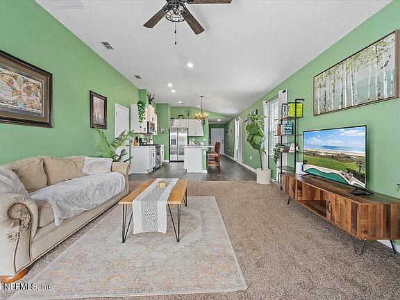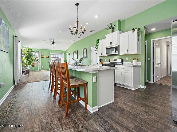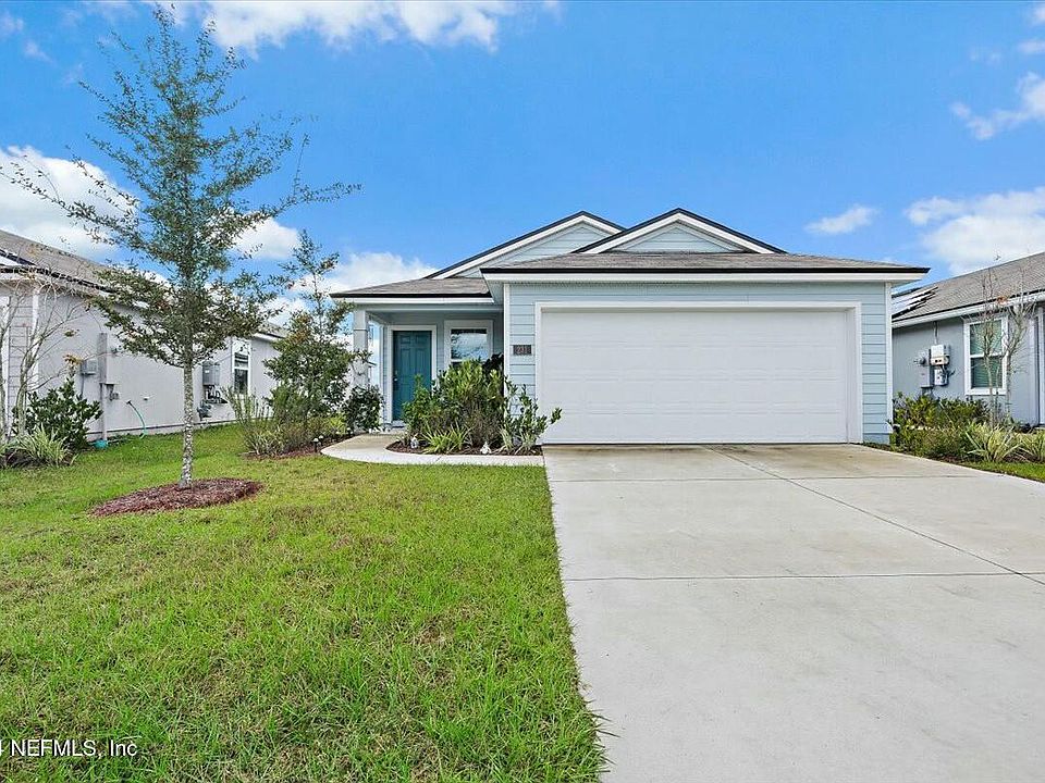 Move in ready. Why wait for construction. Discover your perfect oasis in this stunning three bedroom two bath home located in the well sought after newer Entrada subdivision located just minutes from Saint Augustine and I-95 corridor. The home is a newer home built in 2021 by DR Horton. This beautiful property boasts a spacious open floor plan & modern amenities. Large kitchen with 42 in white cabinets, center island for entraining or food prep area & stainless appliances.Split bedrooms. Home has a fully Vynl fenced in yard with small patio and is walking distance to explore this fantastic neighborhood and its amenities. Two pool areas, pickle ball courts, basket ball courts, play ground, dog park and splash park. The community is close to the new Baptist hospital, new grocery store & close school district. Close to historic St Augustine and its beautiful beaches. Dont miss your chance to live in this vibrant community