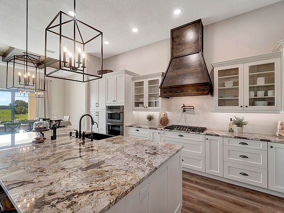 Welcome home. The tranquility and peace of the rural setting within the small enclave of Casa Di Campagni will be palpable as you approach the house via the long paver driveway. Newly built in 2022 with an open floor plan, 3 bedrooms, 3 full bathrooms, 3 half bathrooms, 2 bonus rooms, and a 3 car garage, this stunning home is situated on 4.56 acres. The kitchen has a lot of counter space and cabinets, double oven, gas cooktop, stainless steel appliances, a large farmhouse sink, and a custom-made wood hood, all of which are accented by the 5 x 10 island, making it ideal for entertaining. The walk-in butler's pantry, which includes custom cabinets and shelving, as well as the wet bar, are additional bonus features of the kitchen. See supplement for more information. The spacious great room is accented by a stone fireplace. Custom tongue and groove ceilings in the dining room and great room are complemented by wood beams to add a touch of elegance. A bonus room with french doors that can be used as a wine room, den, or office is located just outside the great room. The owner's suite has two walk-in closets, as well as sliding glass doors that open to a peaceful view of the pond and surrounding greenery. The owner's bathroom has a stand-alone bathtub, two vanities, and a large step-in shower with dual shower heads. Do you want a game room, an additional family room, fitness room, or theater room? This home has it. Step out to the covered lanai the perfect setting to relax in front of the fireplace. The lanai is plumbed for gas, water, electric and a hood, and with approximately 700 square feet of outdoor living space there's room to add a summer kitchen. Additional features include impact windows & doors, pre-wired for a generator, 500 gallon propane tank and more. With 4.56 acres there's room to add a pool, a guest suite, detached garage or out building on the raised soil pad that's already in place.