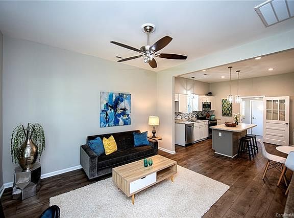 Absolutely adorable completely refurbished Bungalow home within walking distance of Winthrop University, home also backs up to Stadium Park and is about a mile from downtown Rock Hill. Ceilings in all rooms except one bedroom have been raised to 10 ft. The home features new HVAC, new roof, water heater, electrical panel and wiring, all new plumbing, windows and doors, new kitchen cabinets/ countertops/ backsplash, pantry, island and all new stainless steel appliances, ensuite bath added to master bedroom with double sinks, new vanity in secondary bath, new wood laminate floors, carpet & paint and all new window coverings....Whew! The home also has a partially fenced yard only the sides next to the front of the house need to be closed in.