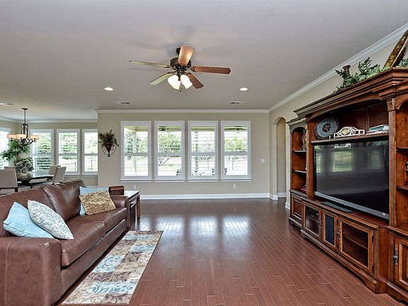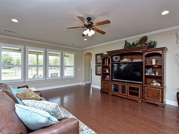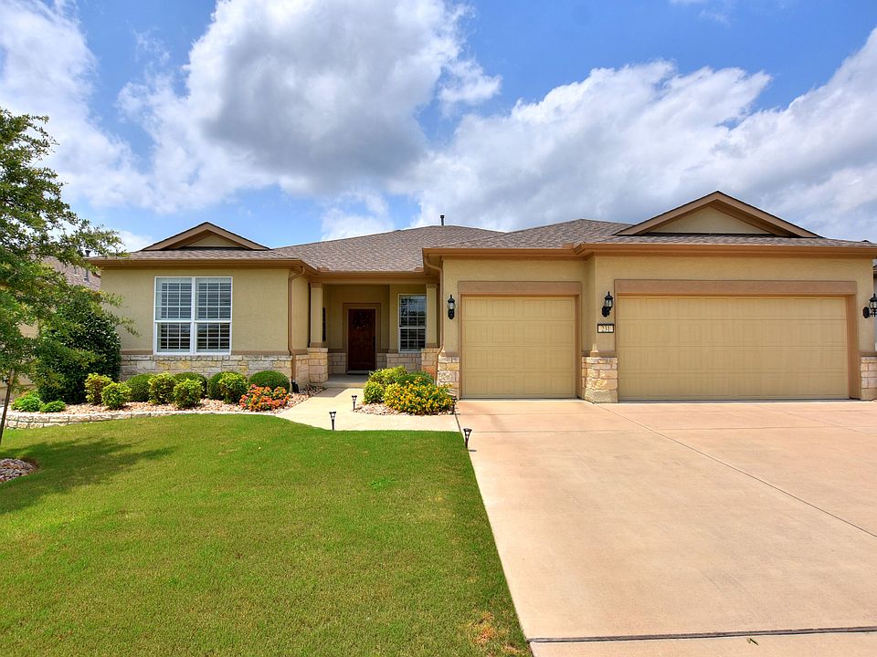 Spacious and open Dunwoody plan home in Sun City offers 3 bedrooms PLUS office with French door entry. Greenbelt views and fully fenced back yard. Wood floors recently added in guest bedrooms. No carpet throughout! Plantation shutters & tray ceilings are additional upgrades. Kitchen includes white cabinets, granite counters, extended island with cabinets on both ends, Kitchen Aid Stainless built-in appliances & under cabinet lighting. Oil-rubbed bronze hardware throughout. All this, PLUS a 3-car garage!