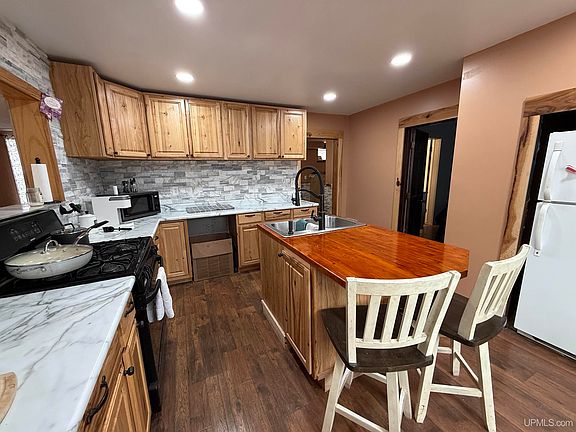 Spacious Munising Home – Walk to Everything You Need! Welcome to this generously sized home in the heart of Munising, offering convenience, comfort, and endless possibilities. The main floor features a spacious bedroom and full bath, a large living room perfect for gatherings, a room, and a well-equipped kitchen with an island and abundant cabinetry. A charming front porch leads to an additional room that could be a dedicated laundry space. Need storage? The full basement has you covered. Upstairs, you’ll find three more well-sized bedrooms and a stunning full bath featuring a clawfoot tub and separate shower. As an added bonus, the third level provides an extra flexible space—ideal for a home office, playroom, or creative retreat. Garage lovers, prepare to be impressed! In addition to an attached one-car garage with insulated walls, there’s an enormous 16 x 40 garage with 10’ door height (14’ header), perfect for large vehicles, workshop space, or extra storage. Step outside to a private fenced-in yard on a corner lot, complete with a firepit—your personal oasis for relaxation or entertaining. Don’t miss this opportunity!