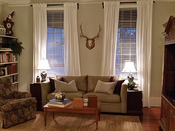 Never miss a Parade! Beautiful historic home in the heart of downtown Prattville. Located on the corner of E Main St. and College, this home offers over 2400 square feet of living space. It is truly a gathering place. The large front porch offers a comfortable place to view city parades and to enjoy time with friends and neighbors. Once you enter the house the beauty of heart pine floors and ten-foot ceilings will impress you. The living room opens to a large dining room that begs for family gatherings and offers plenty of storage space for those family heirlooms. The dining room's sparkling crystal chandelier will take your breath away. The well equipped eat-in kitchen has lots of cabinet space. A small courtyard sits outside the kitchen perfect for alfresco dining. The master bedroom has wood floors, high ceilings, and two closets, one of which is a walk-in. The room off the master could serve as a den, office, nursery, or what have you. The master suite area is completed by a spacious bathroom with separate shower and a heavenly claw-foot tub. The 2nd bedroom has a full bathroom while the 3rd bedroom (this room could also be used as a den, office, etc.) has a half bath that could easily be made into a full. There is ample storage space throughout the home; nowhere is this fact more obvious than in the extra large laundry room. In the fenced backyard is even more storage with a two-sided shed (one side is currently being used as a chicken coop). This is an incredible home in a wonderful and vibrant part of Prattville. Call to schedule a tour: (334)549-9933.