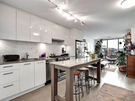 Welcome to Framework by Porte Developments, a boutique concrete building in Chinatown which is among some of the city's best local taste-makers and in one of the most dynamic social and cultural hot spots in Vancouver. This stylish one bedroom + den is the perfect layout for today's young professional. FEATURES: polished concrete floors , high-end finishings, a spa inspired bathroom with large tub and separate shower, a chef's kitchen with SS appliances and a gas range. Take in the city views over a coffee or cocktail from the south facing balcony just off the living space. Thoughtfully built, this home has a separate storage locker on the same floor, in addition to plenty of in suite storage + 1 parking! Pet & rental friendly building. Balance of 2-5-10 New Home Warranty. Don't miss out!