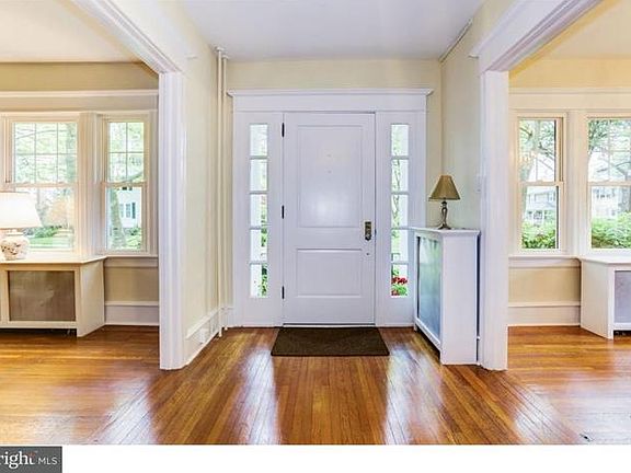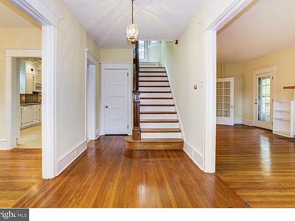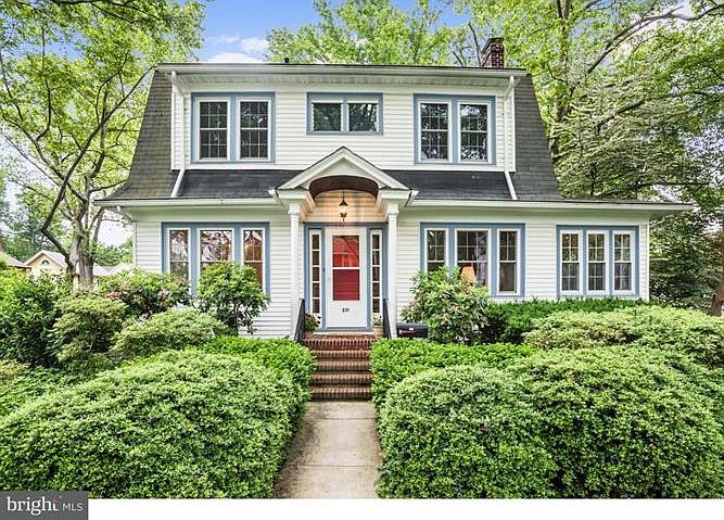 Ever-charming Dutch colonial home in Moorestown's Baker elementary school district! This beautifully maintained home on a very large lot sits on a favorite street lined with mature trees and landscape. A picturesque portico and brick stoop leads to the center hall foyer and lovely wide turned staircase with original tall moldings. All freshly painted this 3 to 4 bedroom, 1.5 bathroom home also boasts refinished hardwood floors, tall moldings and casings throughout plus nearly all replaced windows. Large dining room with sunny walkout bay window opens to the kitchen which has been updated over the years now benefitting from additional cabinetry, updated countertops and backsplash. Just off the kitchen is the 1st floor laundry room, powder room and access to the back yard and driveway with oversized 2 car detached garage with electric! The 1st floor will suit many needs with the large living room with fireplace, bonus room that has been used as a bedroom can also be playroom or office and still a side sunroom dressed with built in bookshelves, beadboard and windows is sure to be a favorite spot in this home! The 2nd floor has 3 bedrooms, full bathroom and large hall with linen closet. The master bedroom has plentiful closet space and a dressing area, rare for a home of this age. The large basement is great for storage or a workspace. Enjoy the serene yard from the newer composite deck that also has access to the back yard. In addition to fresh paint, newer windows and refinished hardwood floors the home offers updated electric service and gas heat. Tremendous possibilities for this property thanks to a well-cared for home and especially large lot in an excellent location! Home is priced accordingly for strictly as-is sale, it won't last! Lovely home and condition!