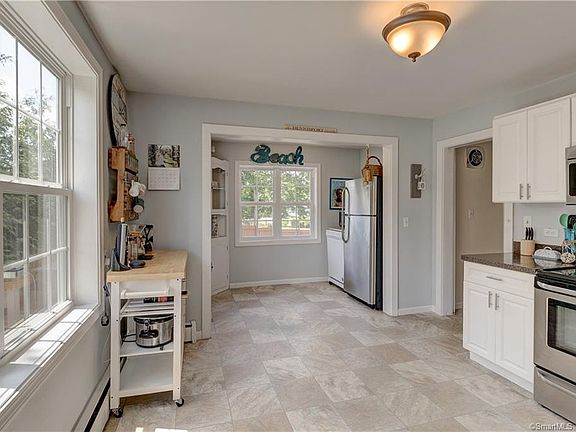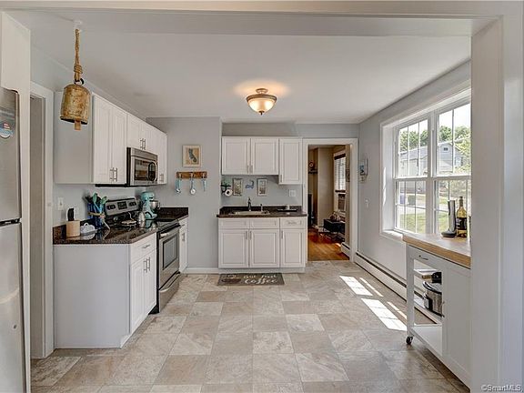 Welcome Home This warm and inviting colonial has just come on the market. You will love the enclosed front porch that leads you into this cozy house. The first floor has a living room/dining room open floor plan with hardwood flooring. A large kitchen with stainless steel appliances and half bath that completes the main level. Upstairs has two good sized bedrooms and an additional room that can easily be used as a third bedroom or office. Large deck off the kitchen that is perfect for outdoor entertaining. Updated baths and new windows in place. Once you walk into this lovely home, you will want to make it yours