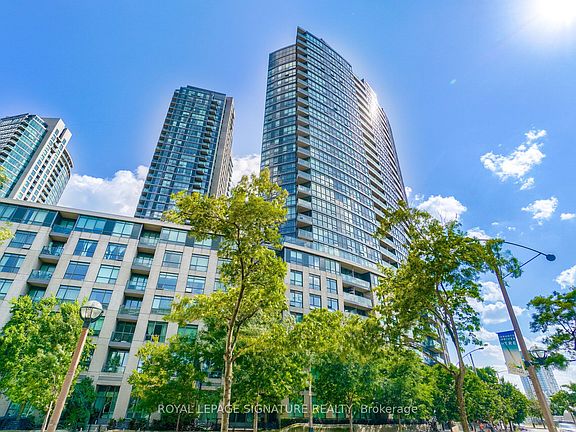 Bright, spacious, and a great lay-out - this stunning 2 bed + 2 full bath condo in Atlantis at Waterpark City offers urban elegance with unbeatable location. The split-bedroom floor plan ensures privacy: the master features three closets, including his & hers, while the second bedroom boasts a double closet. You'll love the engineered hardwood floors throughout, granite kitchen counters, and large windows that flood the space with natural light. Step out onto your balcony to enjoy sweeping views of the CN Tower and The Bentway perfect for morning coffee or evening wind-downs. One locker included. Amenities here are resort-style: indoor pool, fitness centre, sauna, rooftop garden & BBQ terrace, yoga studio, guest suites and 24-hr concierge. Living here means having everything you need at your doorstep shopping (Loblaws, LCBO), dining, cafés, parks, transit (TTC & GO),waterfront trails with King West, Liberty Village, Exhibition Place all within a short walk. Show with confidence this prime Downtown Toronto gem wont last.