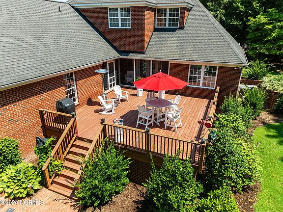 Welcome to this exceptionally well-maintained custom brick luxury home, situated in the serene waterfront community of Black Rock. Nestled on a private lot, this residence offers water views and a tranquil, secluded backyard. Enjoy outdoor living on the expansive deck or relax in the screened-in patio. Step inside to discover vaulted ceilings, built-in bookcases, and a stunning double-sided fireplace that serves as a centerpiece between the family room and additional sitting area. The home also boasts a formal dining room, perfect for hosting elegant dinners. This home features two primary suites, perfect for ultimate comfort and privacy. With a total of four bedrooms and three and a half baths, there is ample space for family and guests. The three-car garage provides plenty of room for vehicles and additional storage. Living in the Black Rock community, you'll enjoy a variety of amenities, including a boat dock, boat/RV storage, a covered area for gatherings with family and friends, and a small playground for children. Located just minutes from the historic and picturesque downtown Edenton, NC, and a well-appointed Arnold Palmer golf course, this home offers the perfect blend of luxury living and community charm. Experience the elegance and charm of this beautiful home, designed for both luxury and everyday living. Welcome to your dream home in the friendly and vibrant waterfront community of Black Rock!