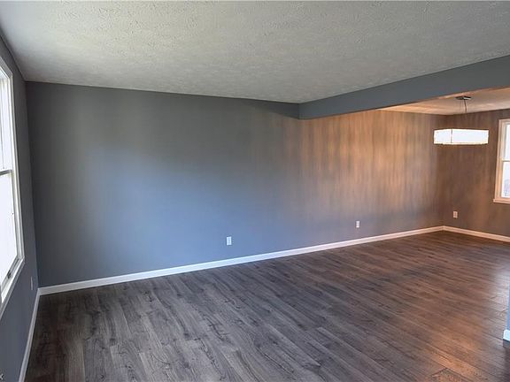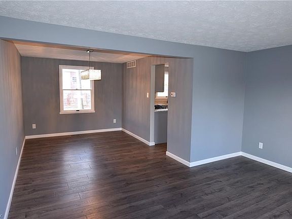 This family oriented two-story, three-bedroom home has just been completely updated inside, from top to bottom! Be the first person to enjoy this move in ready home since its renovations! Big style is paramount from the time you walk in the door. Stylish, smoky colored hardwood style flooring pours through the first floor of the home, accenting the rich, gray walls with stark white trim. Modern styling continues as the open living and dining rooms lead into a gorgeous kitchen area. Filled with new stainless appliances and polished marble countertops, this one isn't to be missed. The hall continues down to a rustic fireplace and great room. A half bath on the first floor is located nearby the stairwell. Second floor living quarters offer big space with carpet filled rooms. Three bedrooms include an oversized master which houses an incredible master bath complete with double vanity and elegant tile work. A main bath is also located at the second floor between the rooms. Downstairs, a finished basement provides additional living space or rec room.