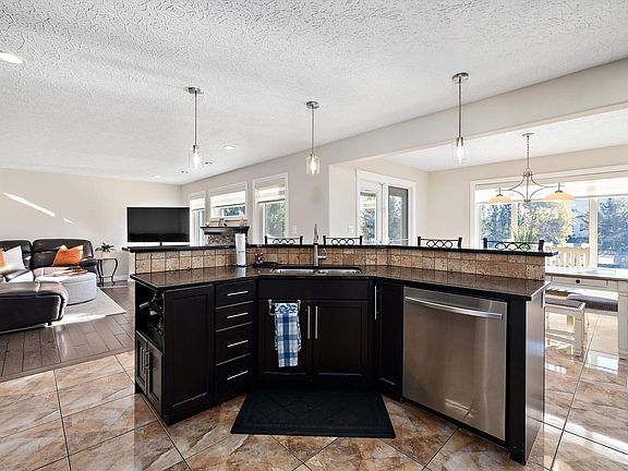Welcome to this beautifully finished home showcasing quality craftsmanship and exceptional value throughout. The main floor offers a bright open layout with elegant engineered hardwood and ceramic tile, a stylish kitchen with granite countertops, and stainless steel appliances. Upstairs features a spacious bonus room with a cozy gas fireplace and a luxurious 5-piece primary ensuite. The basement is perfect for entertaining, complete with a bedroom, 3-piece bath, laminate flooring, wet bar with beverage cooler, and another gas fireplace. A hidden bonus room adds versatility—ideal for a private wine cellar, gun room, or extra storage. The triple attached garage is heated, insulated, and finished with laminate tile and built-in cabinets. Enjoy outdoor living on the large deck, perfect for family gatherings or relaxing evenings. Additional highlights include an on-demand hot water system, water softener, air conditioning, and all window coverings. Don’t miss this opportunity!