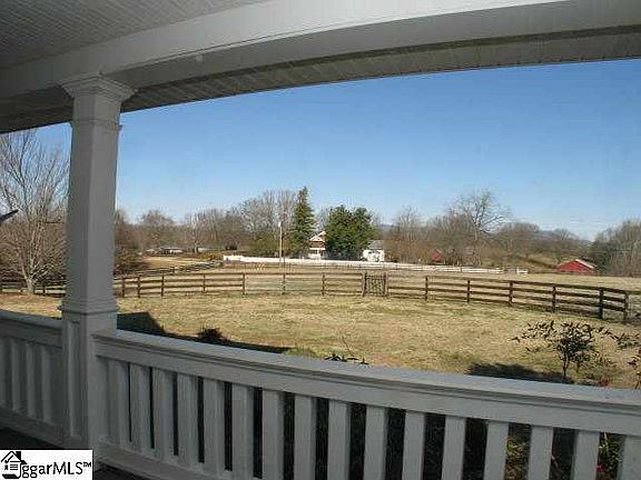Wow, really nice horse property with a mountain view into the Blue Ridge Mountains, classic wraparound porches for a southern look, and nice details inside. There is plenty of space on this 4.2 acres parcel with about 2 acres fenced for horses in the front of the property. Wooded on all other sides for privacy, and sitting on top of a hill, you will enjoy sunsets from the back deck or in ground pool. The three car garage is huge and has extra storage, plus at the end of a paved circle drive, there is a storage shed with 30x26 under roof. Inside you will find nice appointments: deep molding throughout, tile counters, 10 inch baseboards, and loads of hardwood floors. Two spacious master suites, one on each floor with large master baths and walking closets. The bonus space over the garage is unbelievable: more like a guest house with large central room, fireplace, and two adjacent rooms, plus big bath. It would also work well as a separate office, dance studio, crafts space, or te