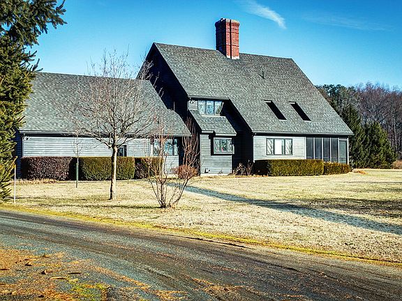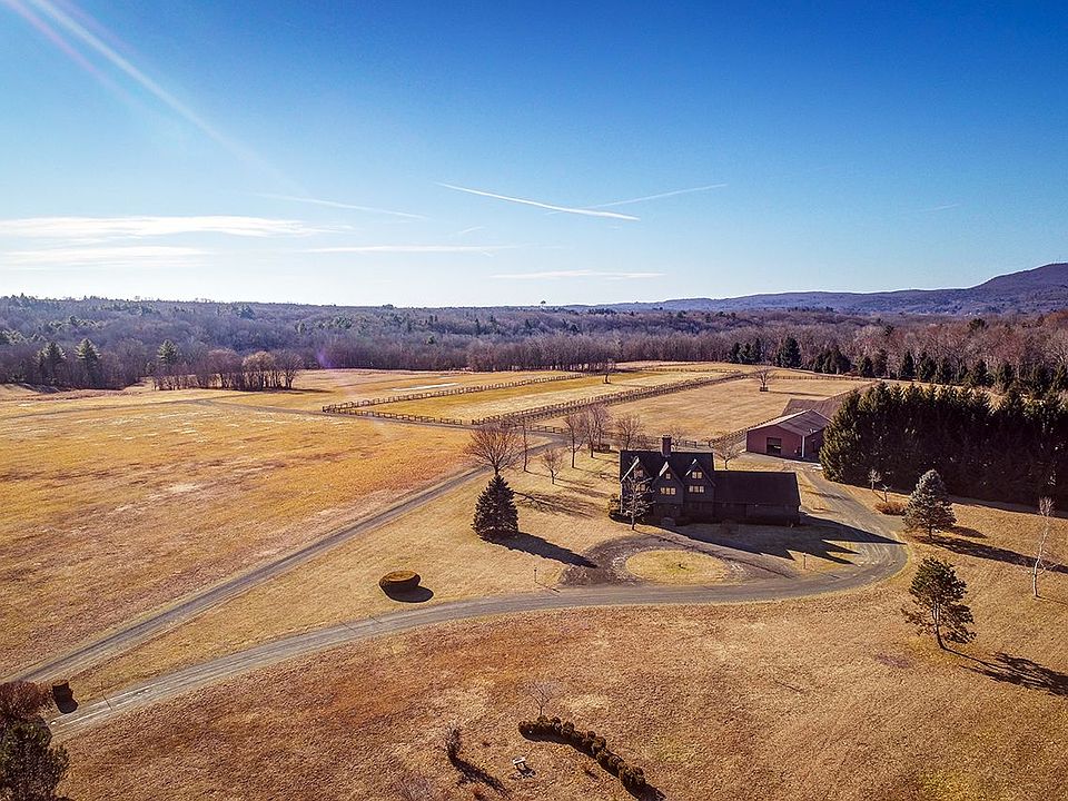 Set at the end of the road, Neptune Farm's private 77.81± acres feature a 2,838± sq.ft. Saltbox Colonial style residence with three bedrooms and three full bathrooms. The equestrian property includes a 10-stall horse barn, 12,000± indoor riding arena, storage barn, and two large paddocks with water available. There is a well-maintained gravel road network connecting the large fenced grass paddock areas allowing for ease of access to the large property. The Saltbox Colonial main residence is a reproduction with Contemporary and Tudor-style elements built in 1985. There is a formal dining room and living room with beamed ceilings. Two fireplaces in the living room and family room offers multiple spaces to warm up fireside in the cooler fall and winter. Off the family room is a screened porch to enjoy the warmer spring days. With heating in the horse barn, the property is designed to be enjoyed year-round.