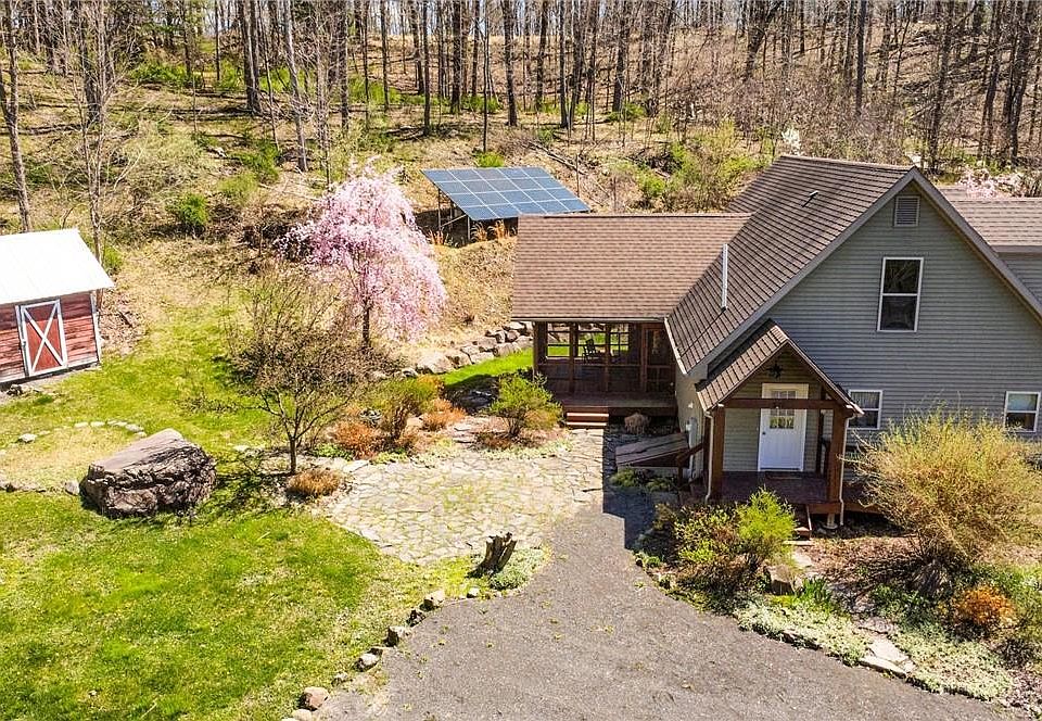 You will feel right at home in this spacious 4 BR/3 Bath cape nestled along a quiet country road, only 12 minutes from New Paltz and 10 min to the Strand in Kingston. The home features an open-layout kitchen, dining, and living room area, a primary bedroom suite on the first floor, together with an additional bedroom and bath. The second floor includes two bedrooms, a family room, and a full bath. Enjoy the screened-in porch during those balmy summer evenings. The solar panels are fully paid off.