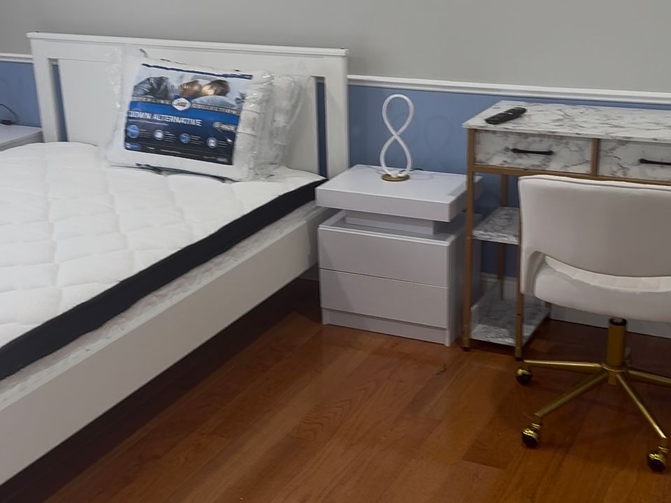 This is a private bedroom on the second floor with a shared but, huge bathroom with one other person only. Double vanity, plenty of storage, separate standup shower, separate Jacuzzi tub. Room is about 200 ft. . It comes fully furnished with a new bed and brand new mattress, brand new side tables with lamps, coffee table, and rug and smart TV. Kitchen dining room, living room and half bathroom downstairs Areall shared common area. The house is 4300 ft. all utilities are included, heating, air-conditioning, parking, property, maintenance, Internet, and laundry room. Single occupancy. No smoking or pets. Looking for hard-working, honest, trustworthy people. Knows how to get along with others. Knows how to clean up after themselves. One year lease, but I would like someone to stay long-term.