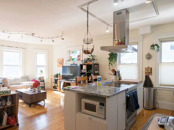 Everything Brand New! Huge 3 bedroom, 2 bath apartment two blocks from Central Square T. Huge kitchen with gas stove and granite countertop center island. Dishwasher/disposal. Skylights in the kitchen and one bedroom. Hardwood floors throughout. Washer/dryer in unit. Highly efficient Rinnai natural gas heating system with supplemental baseboard electric heat in bedrooms. The building has a large backyard available for use by tenants for BBQ, gardening, etc. The building is bike friendly with hitching posts out front and bikes may also be kept in the basement.
