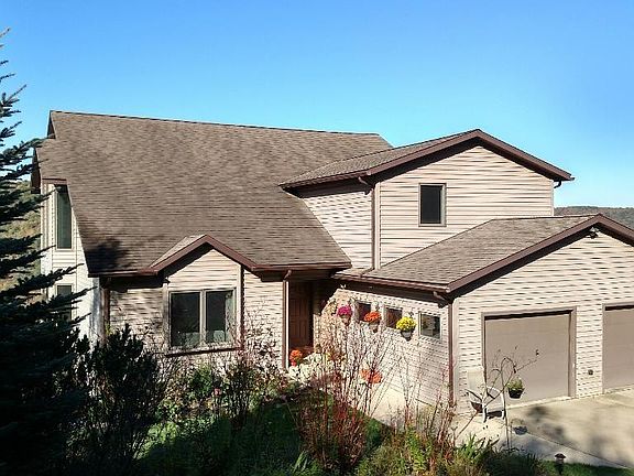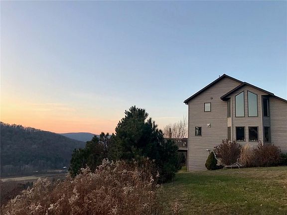 Fall in love with the spectacular views from every room! Hardwood floors throughout, and a Dream Kitchen with professional appliances that any chef would love. Convenient downstairs bedroom / office, large full bathroom, formal dining area, and living room with fireplace. This home offers great space to entertain, have house guests, or relax. Second floor has large master suite with walk in closet and spacious bathroom with modern shower and soaking tub. Two additional bedrooms share a large bathroom with double sinks. Enjoy amazing sunsets or having morning coffee on the large beautiful deck overlooking the 6.2 acre panorama, mountains and valley. A must see!