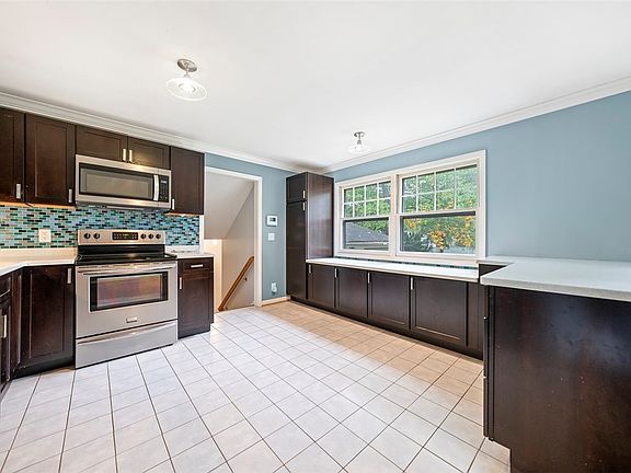 Large 5 Bedroom Raised ranch with In law possibilities. Conveniently located on a low traffic circle with a cul de sac park-like yard. Hardwood is throughout the primary level. Stainless steel kitchen appliances. The gas fireplace on the lower level is covered by a built-in bookcase to support a NYS-certified daycare. Delayed Negotiations until 10/27/22 at 7 pm.