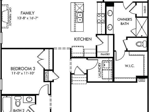 Enjoy happy hour on the Camden's covered back patio. Inside, the sprawling kitchen island overlooks the family room with optional fireplace. In the owner's suite, dual sinks and a walk-in closet simplify busy mornings.