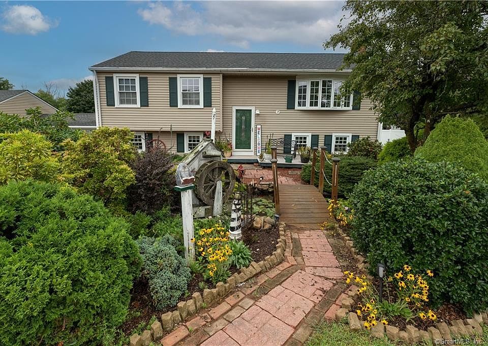 Lovingly Cared for Raised Ranch in Very Desirable Area of Wallingford! Hardwood floors throughout the first floor. Bright living room with bay window opens up to a remodeled kitchen with granite, tile, double oven, ceiling fan and pantry. Convenient mudroom situated off kitchen as well. Nicely sized bedrooms, tastefully remodeled main bathroom. Lower level features a beautiful brick fireplace with a propane insert, a bar-like room with pantry - ideal for entertaining! Lower level also has a possible fourth bedroom or office and laundry room with a half bathroom. An all-purpose bonus room makes a great playroom or workshop area. A very unique 25 X 10 breezeway with double ceiling fans. The front yard has a magnificent flower garden, koi pond with bridge and an attractive stone walls. Enjoy the gorgeous pergola wrapped with grape vines in the backyard. There is also a covered BBQ area, patio, deck, and shed in the backyard. A gardener's dream garden with strawberry, blackberry and raspberry bushes. Central A/C, public water, public sewer. Offer deadline: Monday 6:00PM Offer deadline: Monday 6:00PM