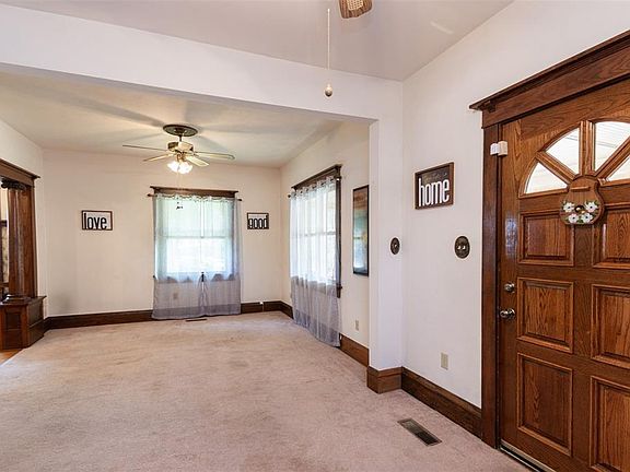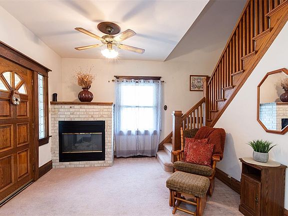 Are you looking for a home with a lot of character at an affordable price? Take a look at this adorable charmer. It's loaded with beautiful woodwork which includes a two sided built in hutch/buffet between the kitchen and dining room. There are glass doors to showcase your beautiful dinnerware or collectibles. The dining room also boasts a coffered ceiling that really makes a statement! In addition, there is a wide ledge along the windows that could be a window seat if you wanted or a great place to set your indoor plants. True to the era, there is a plate rail all the way around the dining room walls. The wood pillars that separate the living and dining rooms are absolutely gorgeous! The incredible staircase railing came from a home that was removed for the construction of I-380. The living room is very spacious and boasts a very nice white and gray brick gas fireplace. Other amenities include hardwood flooring in the dining room, main floor bedroom, nicely updated main floor full bathroom, updated windows on the main and upper level. Did I mention the spacious enclosed front porch or the enclosed back porch that makes a great pantry area or would make great lockers and drop zone? All this and more! Seeing is believing so get a showing scheduled before its gone. You'll be glad you did!