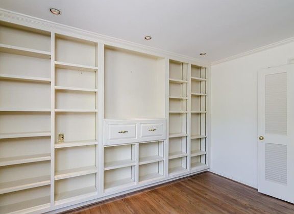 - Interior: Entrance Foyer, Hardwood Floors, Trey Ceilings, Bookcases, Disp Attic Stairs, His & Her Closets