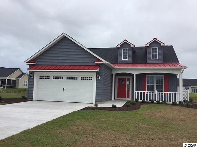 Belle Mer is the brand new Bill Clark Homes community located on the former Wicked Stick Golf Course. This Sandpiper-B home is "to be built" per the buyers specifications. The Sandpiper-B features a front porch, 3 bedrooms, 2 baths, a Carolina room, split bedroom-open concept design with a view of the lake. Bill Clark Homes provides the opportunity to customize your new home. The following options were selected by the buyer to customize their Sandpiper-B: "B" Kitchen design with 36"/42"/24" upper Marsh cabinets with crown molding, under cabinet lights, a lazy Susan, and soft close cabinet doors and drawers, cabinets added to the laundry room, a mop sink, 13'7 x 12'4.5 screen porch option, gas line addition for the kitchen range, built-in bookshelves in the great room to the Carolina room, pendant lights over the kitchen island, and a tray ceiling addition with crown molding enhancement to the master bedroom. Stafford Birch 3", 5", and 7" hardwood, a vapor light addition and a 2nd shower caddy were added to the master bath shower, pre-wire for a fan on the screen porch and Carolina room, rectangular vanity bowls in the master bath and 2nd bath, tile, granite counter tops, stainless steel electric Whirlpool kitchen appliances, vented shelving in all closets, ceiling fans in the owner's suite and great room, screens on all operable windows (Low-E), built-in Taexx Pest Control System, security system, Security Smart Home Solutions (remote door lock, 1 light module, thermostat, WI_FI garage door) lawn irrigation system, fully sodded home site with foundation trees and shrubs. Belle Mer is centrally located between Myrtle Beach and Murrells Inlet; minutes from the public beach accesses in Surfside Beach and Garden City, shopping, the Myrtle Beach International Airport, Market Common, the Murrells Inlet Marsh Walk, several golf courses, Myrtle Beach State Park, restaurants, and entertainment venues.